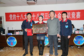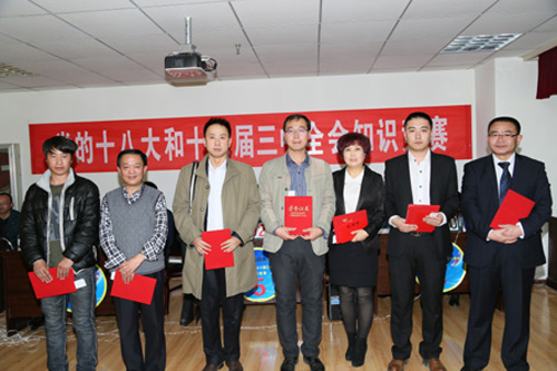集團黨委副書記、工會主席李建民同志在競賽活動結束時指出,競賽方式有利于進一步鞏固和擴大學習宣傳黨的十八大和十八屆三中全會精神的成果。他強調,集團各級黨組織和工會組織把學習宣傳貫徹落實黨的十八大、十八屆三中全會精神作為當前和今后一個時期的重要政治任務來抓,與深入學習習近平總書記系列講話精神相結合,以此次競賽活動為契機、科學謀劃、精心安排,乘勢而上、狠抓落實,參賽隊員要切實履行好骨干宣傳員的使用,發揮好帶動輻射和先鋒模范作用,持續引導全體黨員和干部職工深刻領會黨的十八大和十八屆三中全會精神實質,準確把握全面深化改革的重大決策部署,密切聯系實際,學以致用、學用結合, 為促進企業改革發展,服務“三區建設”、實現“兩新目標”,做出新的更大的貢獻。