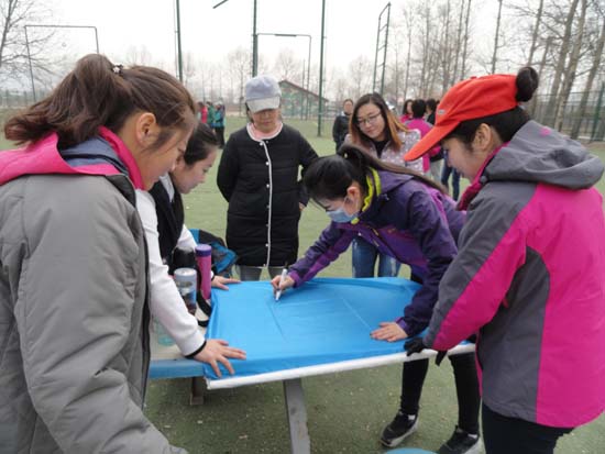 培訓當天,盡管天氣寒冷、黃沙漫天,但參訓隊員們個個精神抖擻,熱情高漲,訓練過程有條不紊進行?;顒娱_始時,進行了破冰熱身、團隊建設活動。全體隊員分為三組,在限定時間內分別組建各自的隊名、隊歌、隊徽及口號。隨后,隊員們信心十足,高呼著團隊口號,在專業培訓師的指導下開始了充滿挑戰的拓展項目。大家相互協作,互幫互助,順利完成了 “高空斷橋”、“穿越電網”、“千里傳珠”、“盲人方陣”、“搶度金沙江”等拓展內容。特別是在閉營項目“搶度金沙江”中,大家充分展示出團隊精神和挑戰困難的勇氣,使整個培訓活動達到了高潮。通過這些拓展項目,將挑戰自我,熔煉團隊,創造激情,強調奉獻,享受快樂的理念傳達給了每一位隊員。活動現場笑聲不斷,掌聲不斷,不僅使同志們感受到戶外運動的魅力,體會到溝通、協作的重要性,更引導大家以開放的心態面對變化,積極進取,啟發想象力與創造力,進一步提高了解決問題的能力,充分展現了水電女職工積極向上,團結進取的精神面貌。