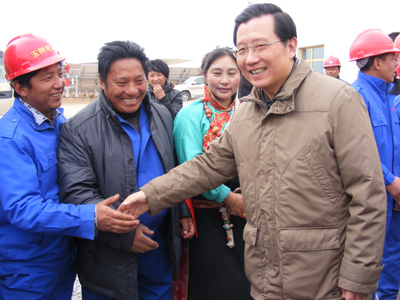 在離開項目工地前,強衛書記和在場的水電干部職工一一握手。他拉著青海水電集團玉樹電力公司(玉能電力開發公司)總經理徐涌同志的手親切地說:“我代表省委、省政府向公司干部職工表示藏歷新年的問候和祝愿,同時也衷心地希望你們繼續發揚和衷共濟、不怕困難、頑強拼搏的精神,繼續做好災后重建保電工作”。同時, 他還向該公司贈送慰問金20000元。
