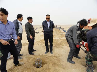 當天早晨,王總經理在集團副總經理、格爾木水電有限公司總經理于宗甲陪同下,首先來到正在開展建前準備工作的格爾木市東出口20兆瓦光伏發電站工地,察看了選址條件和水、電、路設施,詳細詢問了前期手續申報和施工準備情況,并參觀了周圍在建同類項目施工現場和匯流送出工程。他要求集團新能源辦繼續全力以赴推動工作,格水電公司積極予以支持配合,加快完成項目報審程序,及早進入工程建設階段,確保其在年底前投產發電,并力爭進一步擴展規模,真正用足用好國家扶持太陽能發電產業的各項政策。