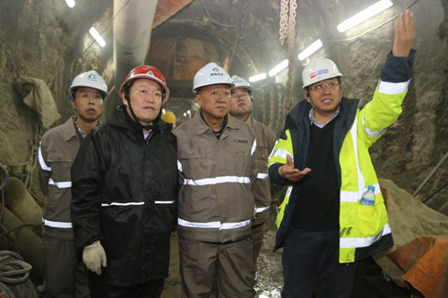 王海青總經(jīng)理向張偉副廳長介紹了調(diào)水總干渠輸水隧洞進口段涌水險情及搶修進展。截止3月12日16時,洞內(nèi)恢復(fù)供電,施工人員連續(xù)進行清淤作業(yè),CMC公司技術(shù)人員正在進行TBM主控室電器設(shè)備安全和技術(shù)指標(biāo)測試,為全面恢復(fù)設(shè)備性能,順利啟機做準(zhǔn)備,搶修工作總體較為順利。在出口段隧洞,張偉詳細了解TBM檢修、拆裝情況,并查看了人工鉆爆施工和現(xiàn)場組織管理情況。張偉強調(diào),參建各方要加強配合協(xié)作,完善技術(shù)措施,優(yōu)化設(shè)計和施工路線,加強安全監(jiān)管,加快施工進度,確保按期完成建設(shè)施工任務(wù)。(文、圖:延青)