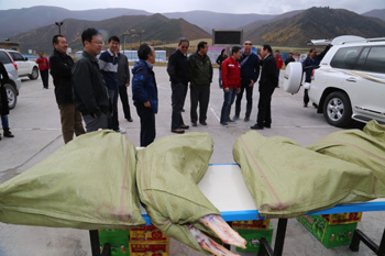 集團(tuán)領(lǐng)導(dǎo)一行先后深入調(diào)水總干渠工程隧洞出口和進(jìn)口段項(xiàng)目施工駐地,親切看望慰問(wèn)節(jié)日期間堅(jiān)守工作崗位的施工、質(zhì)檢、監(jiān)理以及供電等廣大工程管理和施工技術(shù)人員,并向他們贈(zèng)送了水果、肉類等慰問(wèn)品。