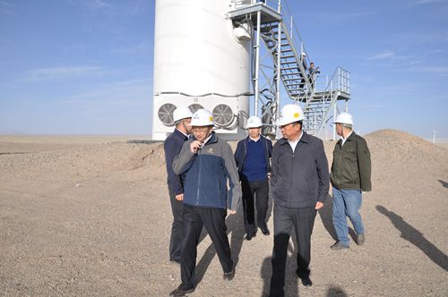 張世豐在海西州、格爾木市水利部門和茫崖行委有關領導陪同下,先后察看了風電場全貌、發電機組和中央控制室,聽取了現場負責同志關于兩期項目投資建設、生產運行、用水需求、經營效益、職工工作和生活條件等情況的匯報,了解后續工程開發規劃及進展,并向一線干部職工表示親切問候。